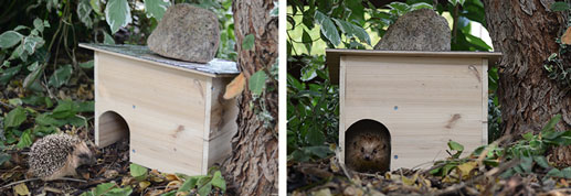 Una casa per ricci non è utile solo per il letargo invernale, poiché questo riparo aumenta anche la possibilità che l’animale viva nel vostro giardino in modo permanente e ne faccia la sua casa. I ricci di solito usano questa casa non solo per il letargo, ma tutto l’anno. L’ingresso a labirinto li protegge da gatti e altri predatori. I ricci si nutrono di lumache. Come predatori naturali, controllano l’infestazione di lumache nel giardino. Anche scarafaggi, lombrichi, ragni e millepiedi sono presenti nel loro menù.