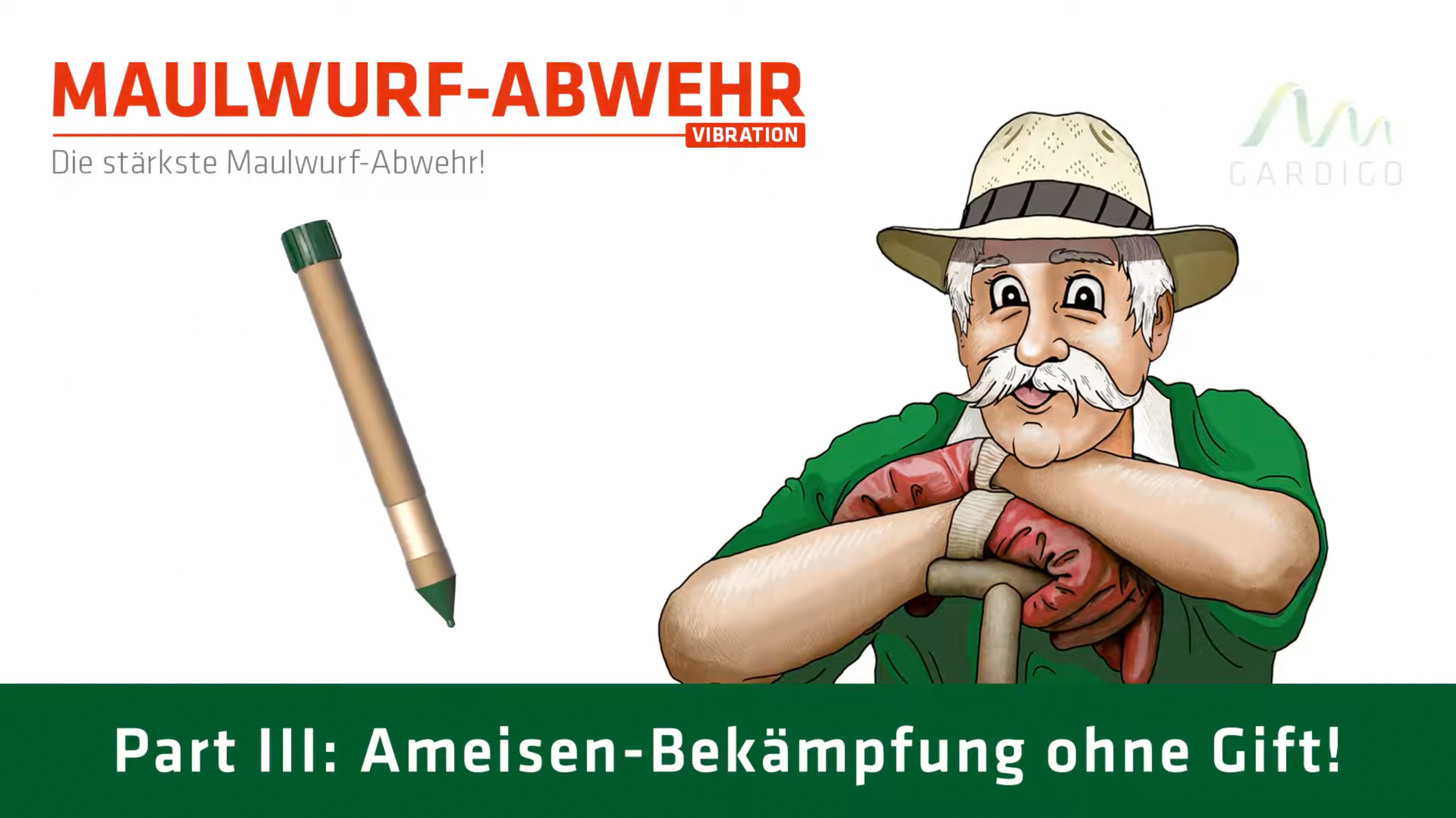 Vuoi sbarazzarti delle talpe: il repellente per talpe con vibrazione di Gardigo è un dissuasore per scacciare talpe, arvicole, toporagni, topi di campagna e formiche e colpisce per l’alta qualità e la potenza del motore a vibrazione. Le creature del sottosuolo dipendono dal loro acuto senso dell’udito e dal rilevamento per segnalare il pericolo. Il repellente anti talpe Gardigo sfrutta questa caratteristica producendo una vibrazione all’interno dell’asta a intervalli di 25 secondi, che induce tutti i roditori entro un raggio fino a 1250 m² a cercare un ambiente "più tranquillo". Grazie al potente motore di vibrazione, il dispositivo può essere utilizzato con successo anche in terreni densi. La vibrazione del repellente per talpe non ha effetti negativi su vermi o animali domestici. L’alloggiamento in alluminio di alta qualità è durevole e resistente alla corrosione. Grazie al cilindro integrato per il cambio rapido della batteria, le batterie possono essere sostituite in un attimo senza rimuovere il dispositivo da terra.