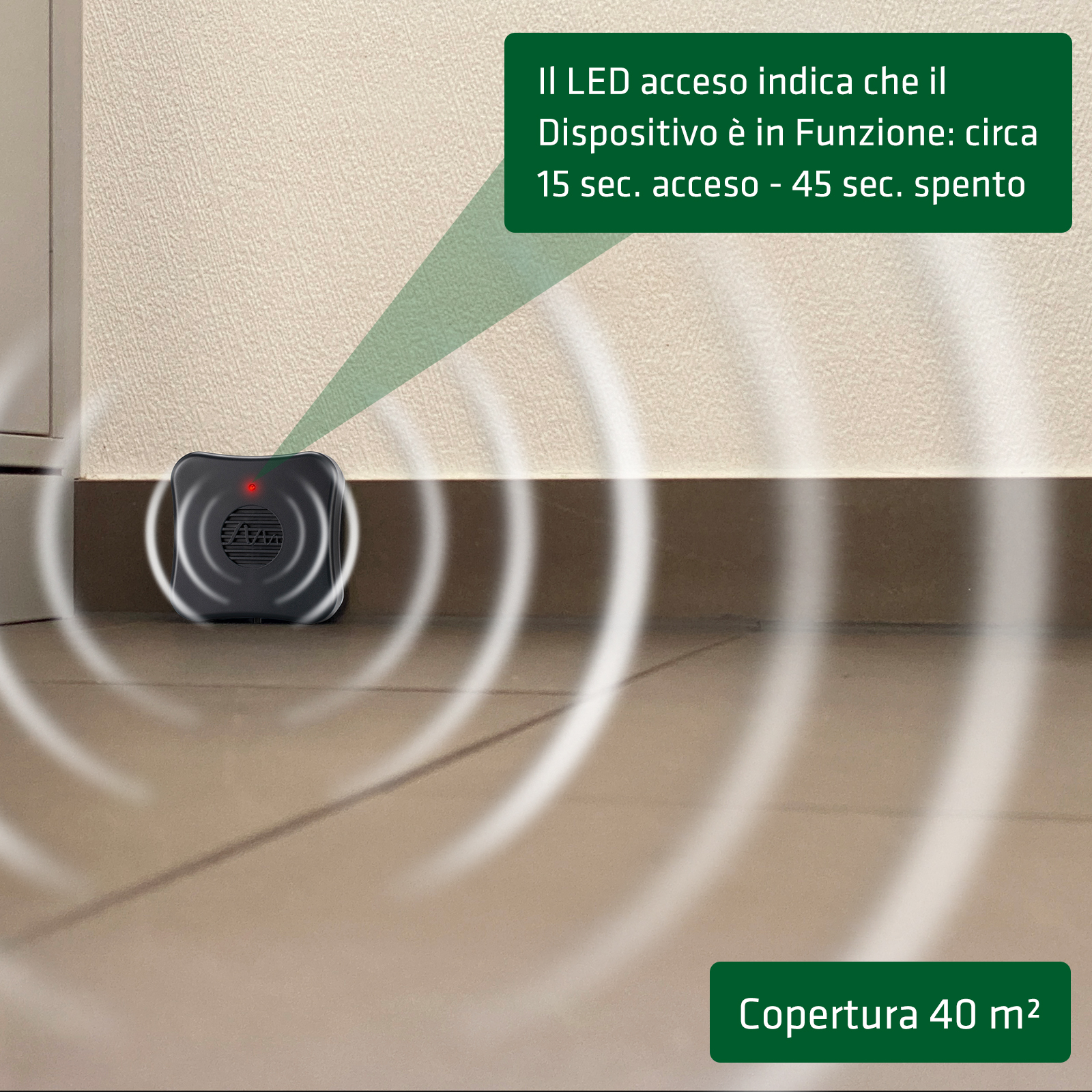 Topi, ratti e altri roditori utilizzano gli ultrasuoni, non udibili dall’uomo, per comunicare tra loro. Il repellente per topi portatile di Gardigo sfrutta questo principio. Il dispositivo emette suoni ad alta frequenza per disturbare gli animali. Questo diventa rapidamente fastidioso per gli animali che cercheranno un posto più tranquillo dove stare. Le persone non sono disturbate dal dispositivo.