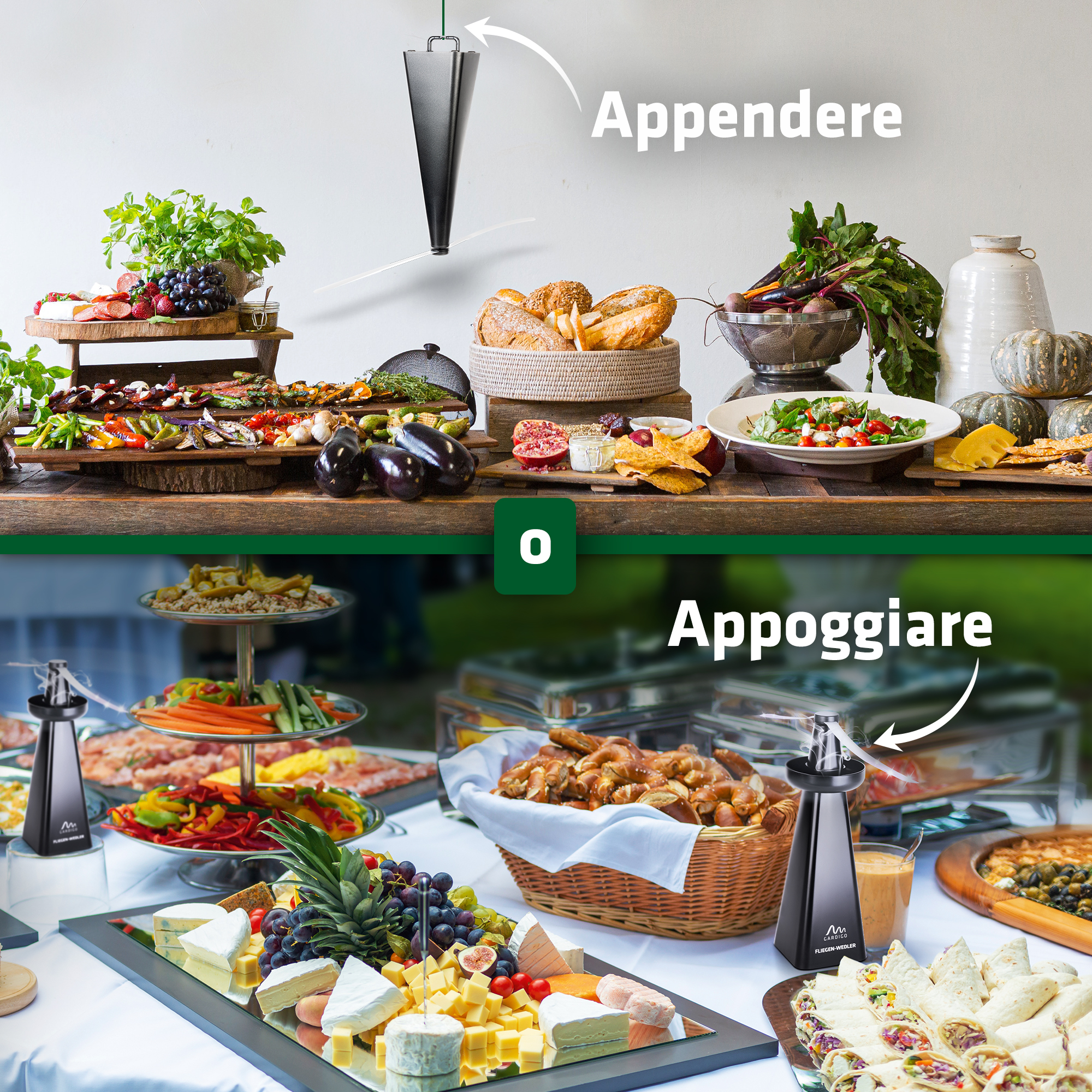Sia che stiate facendo un barbecue in giardino, sia che stiate gustando un caffè in cucina, il nostro repellente per mosche e vespe è adatto per l’uso interno ed esterno. Basta appenderlo o posizionarlo ovunque mosche e vespe vi infastidiscano. Il gancio integrato consente un’installazione flessibile.