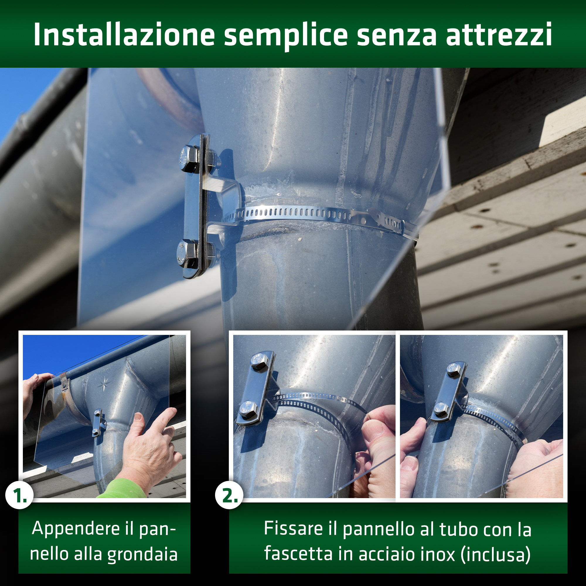 Ricordate di installare uno scudo anti-martora su tutti i tubi pluviali della casa! Acquistando questo prodotto direttamente da GARDIGO, potrete beneficiare automaticamente di sconti vantaggiosi per grandi quantità!