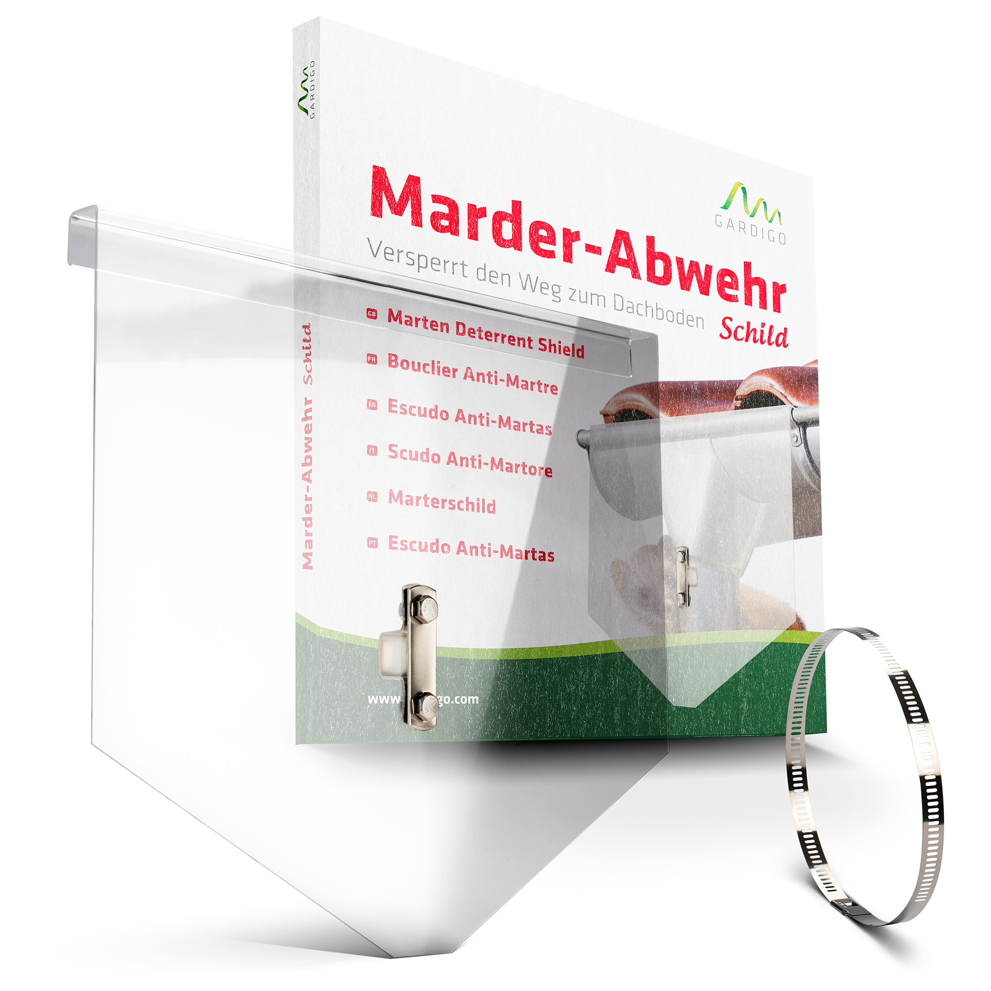 Lo scudo protettivo di GARDIGO è una barriera contro l’arrampicata che impedisce alle martore di raggiungere la soffitta. Gli animali sono abili arrampicatori e spesso utilizzano il tubo di scolo per salire. Proprio qui viene agganciato lo scudo alla grondaia, fissandolo con la fascetta in acciaio inox in dotazione.
